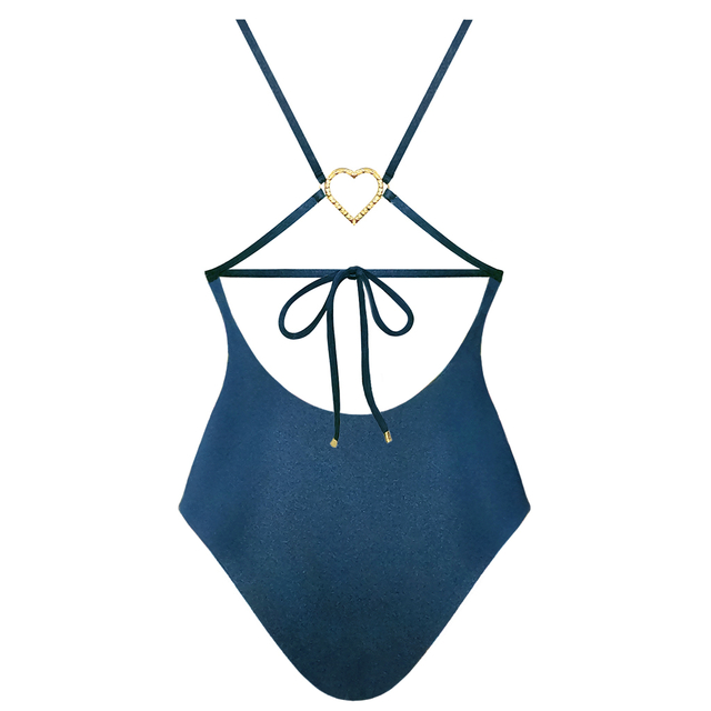 Aquele maiô super seguro pra prática de esportes! Tem um rolotê que cruza nas costas, é regulável, se adapta melhor ao seu corpo. Mas não basta ser prático e seguro, tem que ser único e baphônico, então coloquei um coração banhado a ouro 24K bem no meio das costas, ali na altura do chakra cardíaco, pra expandir todo esse amor e esse brilho que você tem!